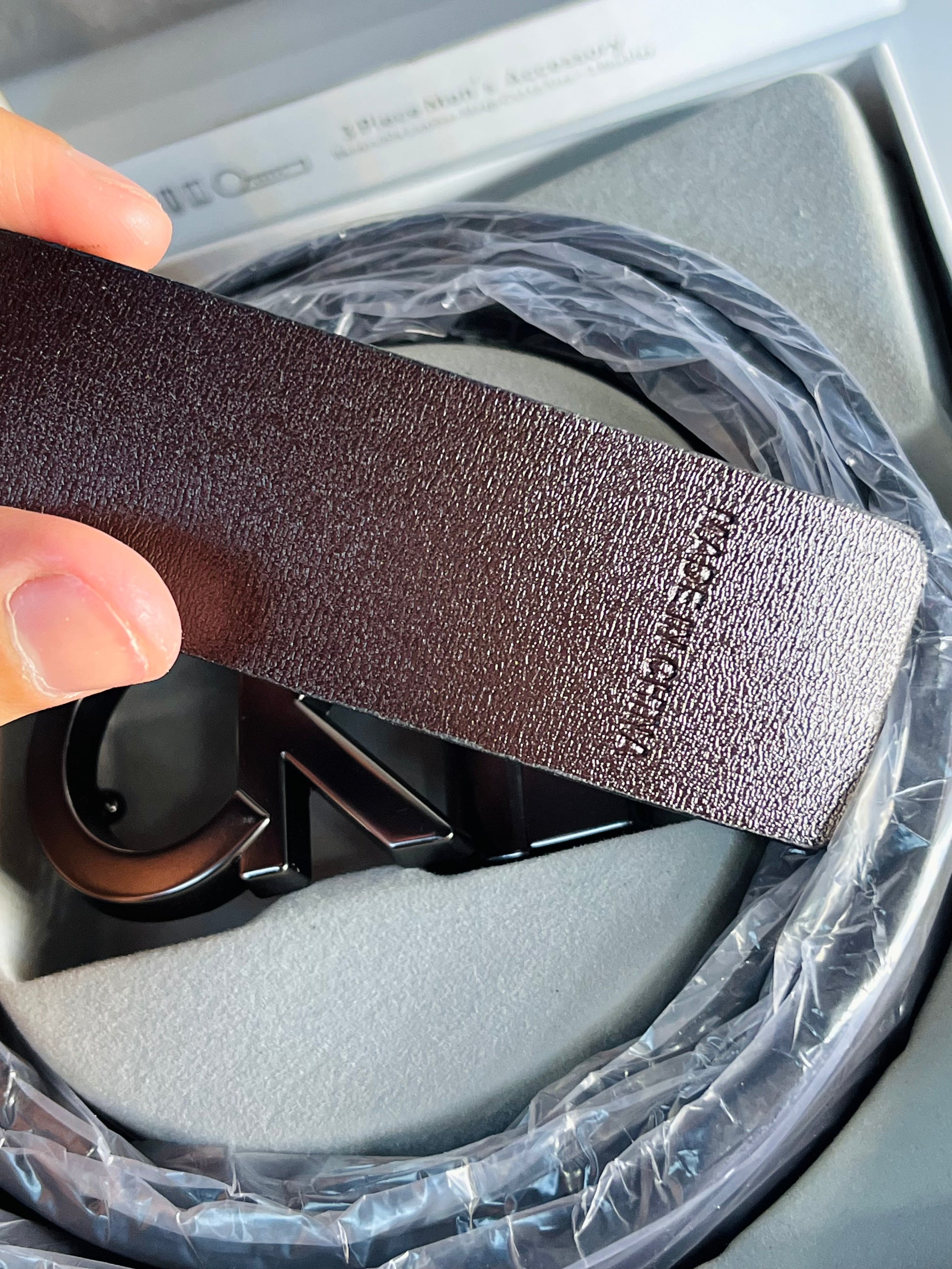 حزام وجهين — بني غامق من جهة، وأسود من الجهة الأخرى